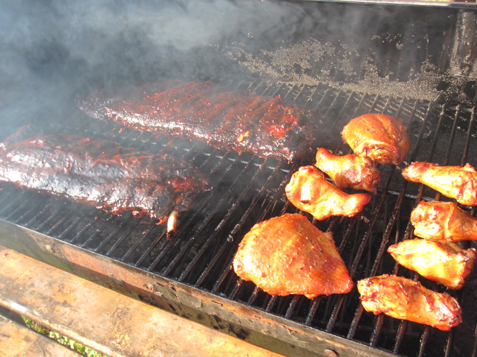 DH helped me by mixing the cake ingredients and basting the chicken every 15 minutes for two hours. He joked that I was making him work on his special day. But if I did it all myself, I bet you lunch would've turned into dinner!